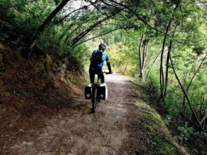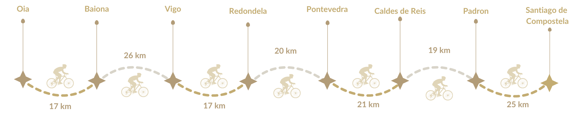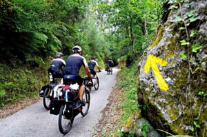 The Camino de Santiago by bicycle programme generally uses the same route that pilgrims follow on foot, and there is no specific cycle route. The route is a combination of rural paths (asphalt, cobblestones, or dirt), forest trails (dirt or gravel, uneven and sometimes rocky), secondary roads, and some main roads (both on asphalt). You may sometimes encounter some steep climbs and descents along the journey, so good physical preparation is necessary to make this trip (except when using e-bikes). Clients require no experience with mountain bikes or bicycle repair knowledge; ALL maintenance and assistance is provided. e.g., changing a tyre, as punctures may occur during the Camino.