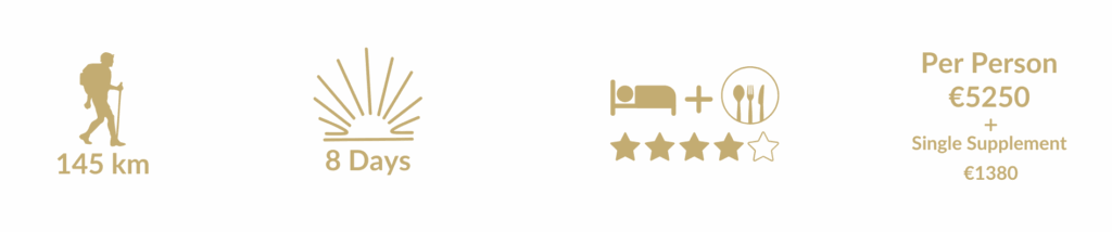 8 Days €5,250 p.p – High Season €6,750 – Single Supplement €1,380